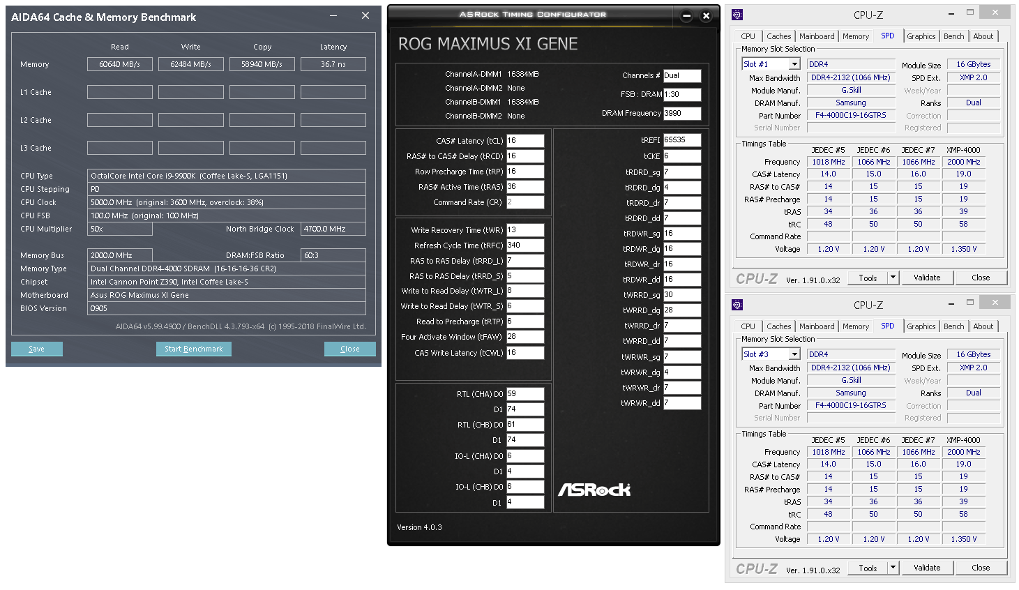 I just got a set of Trident Z Neo F4-3600C16D-32GTZN 2x16GB 3600 16-16-16-36 and I am curious what kind of performance folks are seeing from it - specifically the AIDA64 memory benchmark. I have tried to configure with tighter timings at 3600 (15-15-15-32), as well as at 3800 (16-16-16-34). I'm running an 8086k clocked to 5.0 (45 cache) on an Asrock z370 Taichi. At 3600, I'm seeing 42-43k read/write and 53-54 ns latency. At 3800, I see 45 read/write with latency around the same. However, from what I see searching around is folks with very similar hardware and similar timings getting more than 10k higher read/write scores and 8 ns or more lower latency. So I am wondering what folks around here are seeing as typical. If my scores are low, what might be holding me back?